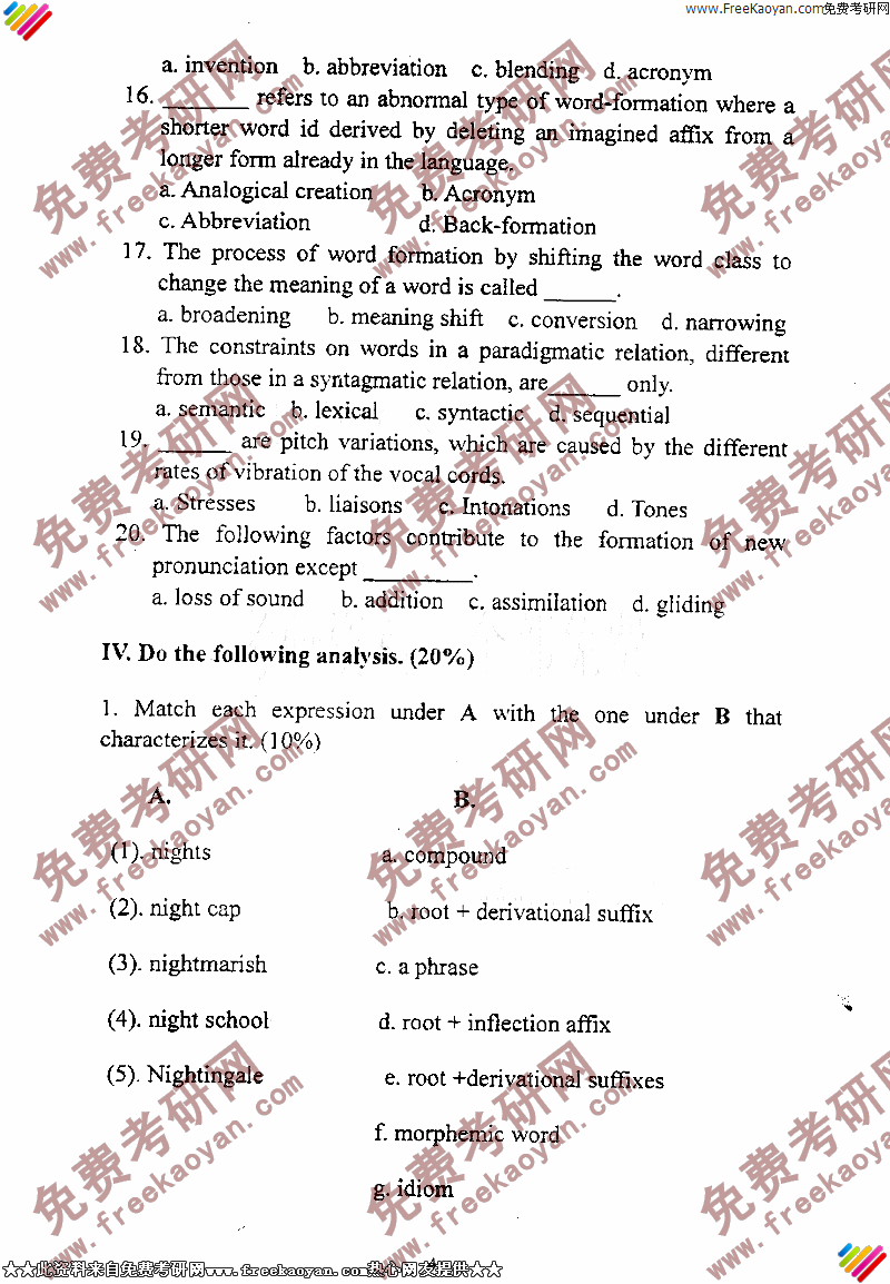 专业课半岛在线注册经验 本站小编 FreeKaoyan 2018-01-22大连外国语大学2003年半岛在线注册真题-英语语言学