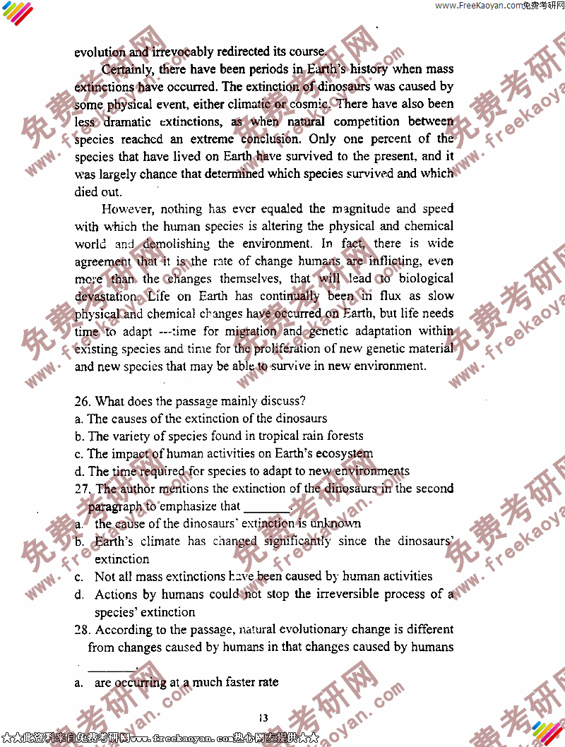大连外国语大学2004年半岛在线注册真题-综合考试(13)