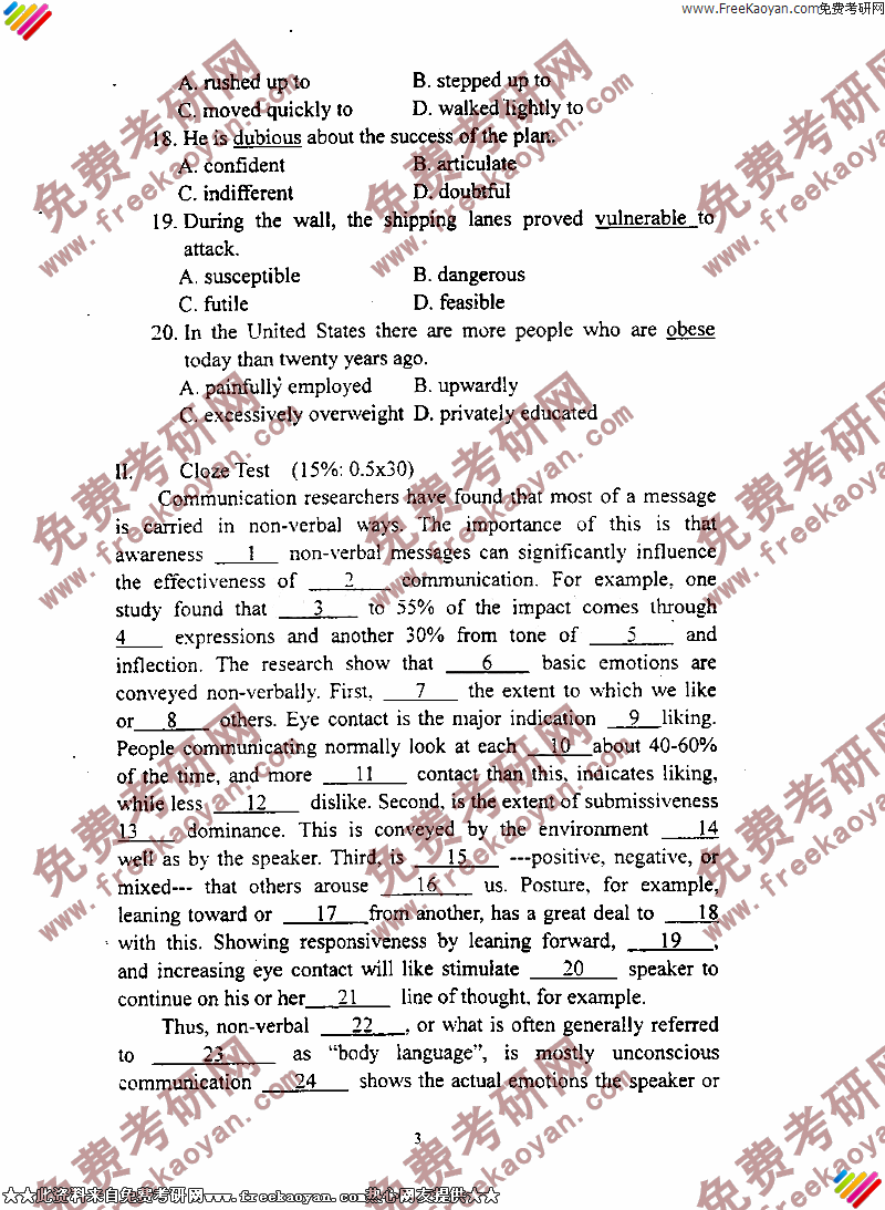 大连外国语大学2004年半岛在线注册真题-综合考试(3)