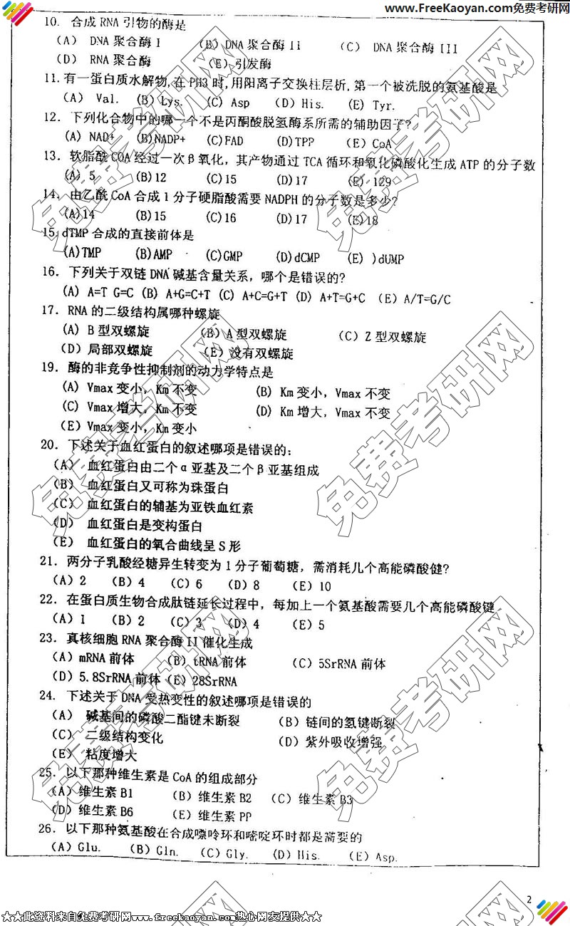 华东师范大学2005年半岛在线注册真题-生物化学(2)