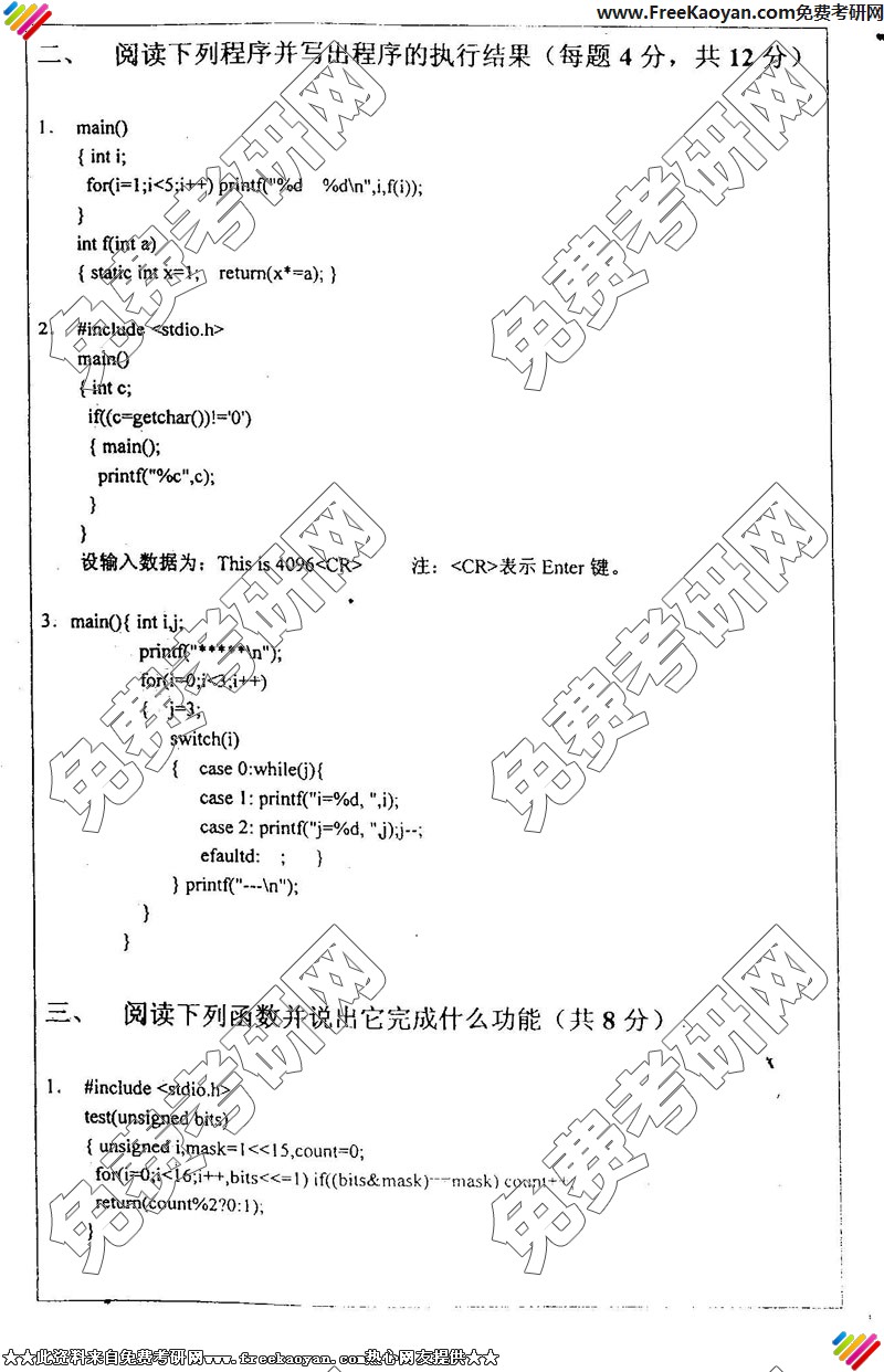 华东师范大学2005年半岛在线注册真题-数据结构(含C程序设计)(2)