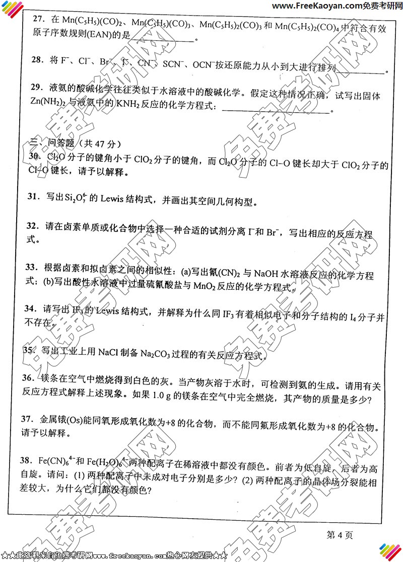 华东师范大学2005年半岛在线注册真题-无机化学(4)