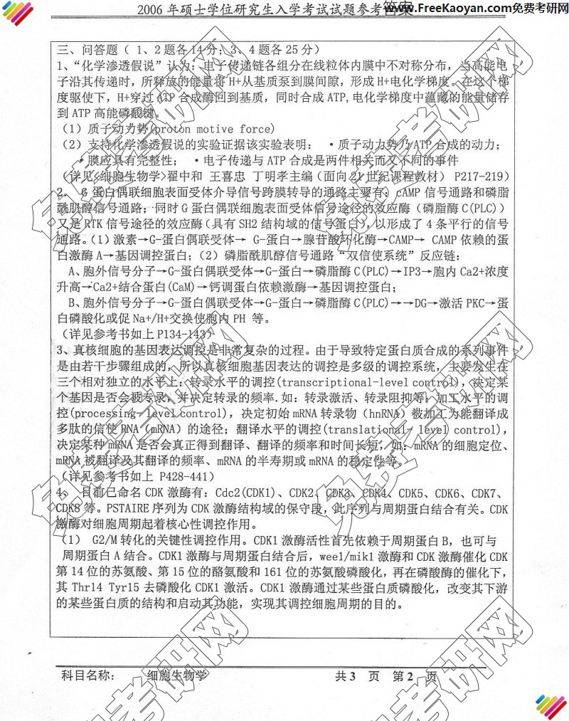 中国科学技术大学2006年半岛在线注册真题-细胞生物学答案(2)