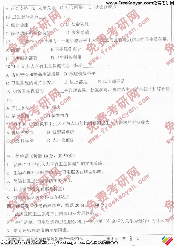 中山大学2006年半岛在线注册真题-社会医学(3)