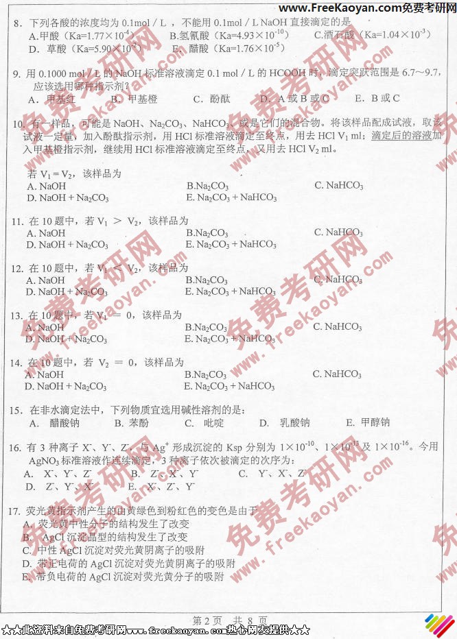 中山大学2006年半岛在线注册真题-分析化学药学院(2)
