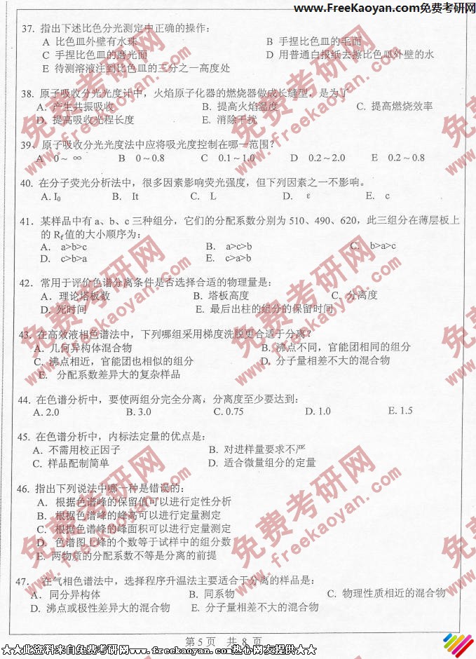 中山大学2006年半岛在线注册真题-分析化学药学院(5)