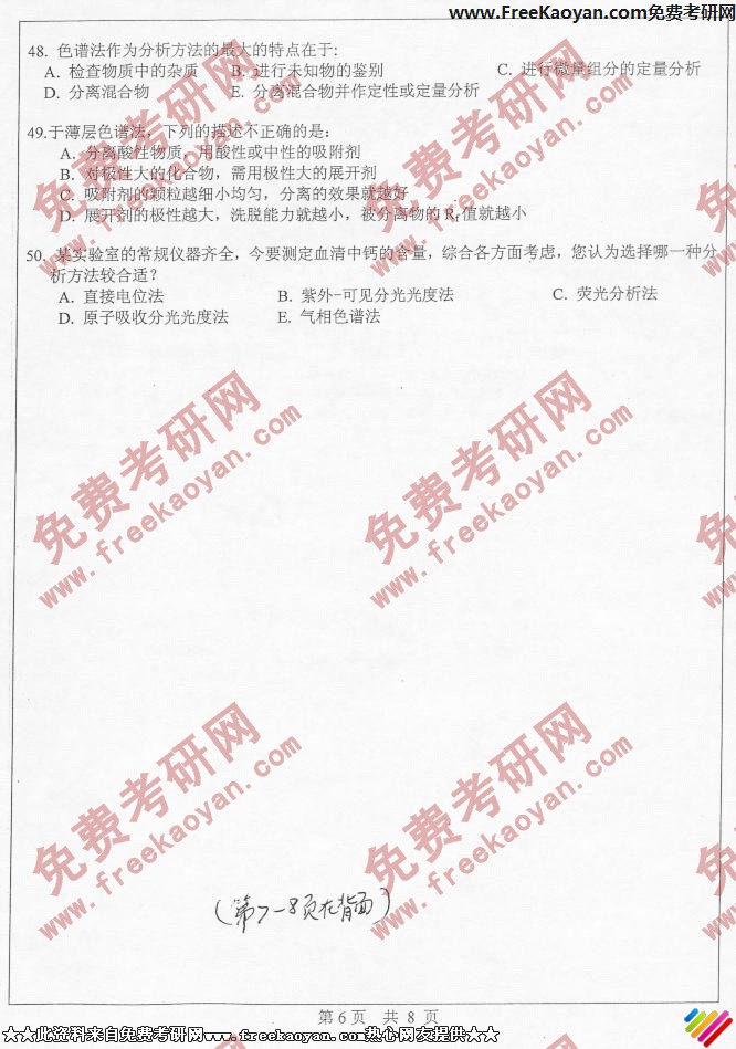 中山大学2006年半岛在线注册真题-分析化学药学院(6)