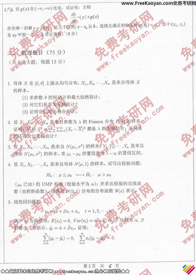 中山大学2006年半岛在线注册真题-数学初试综合考试(六门任选两门)(2)
