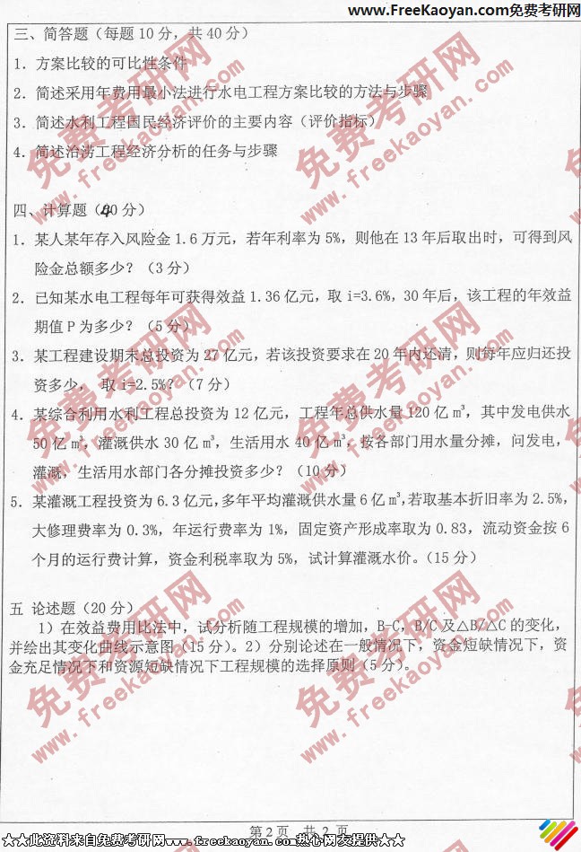 中山大学2006年半岛在线注册真题-水利经济(2)