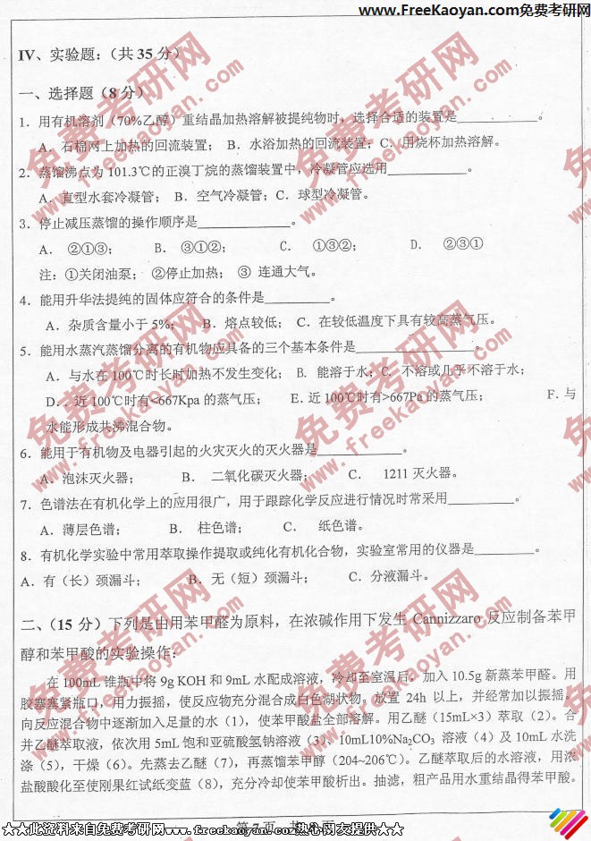 中山大学2006年半岛在线注册真题-有机化学(7)