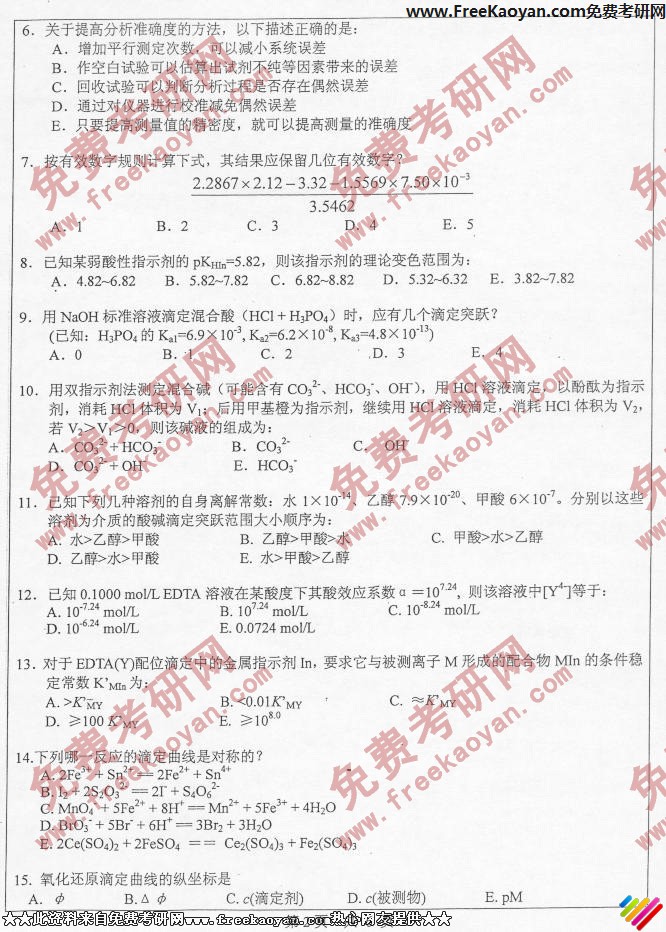 中山大学2006年半岛在线注册真题-分析化学(2)