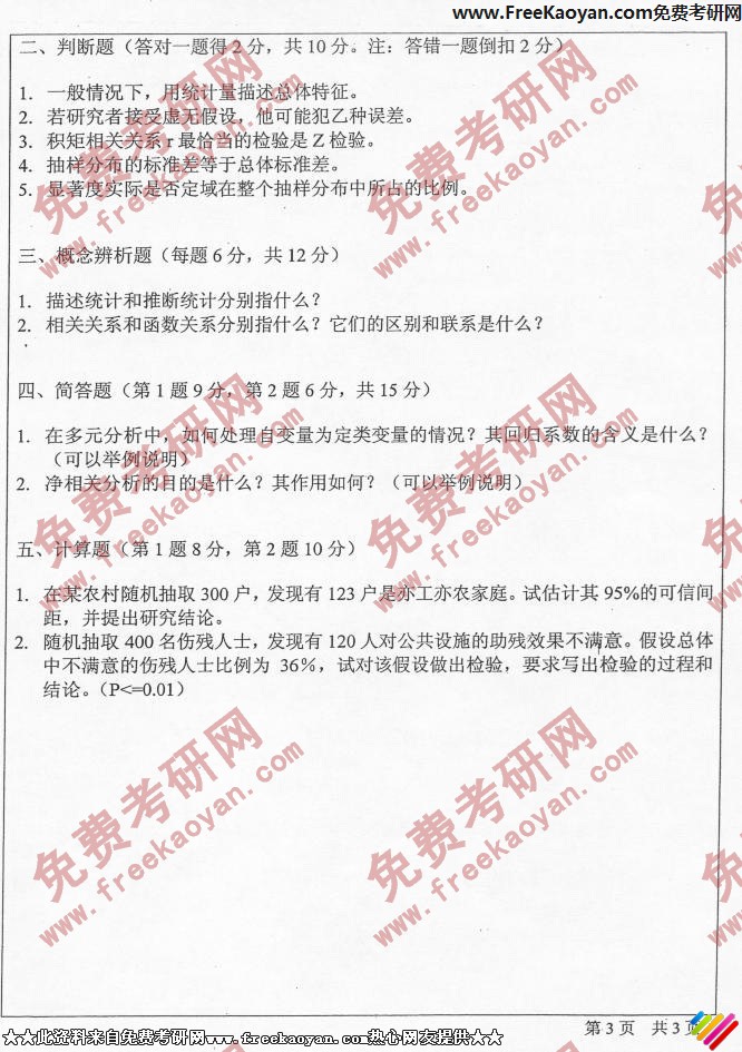中山大学2006年半岛在线注册真题-社会研究方法和社会统计学(3)