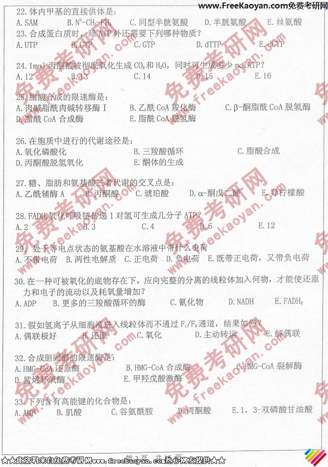 专业课半岛在线注册经验 本站小编 FreeKaoyan 2018-01-22中山大学2006年半岛在线注册真题-生物化学