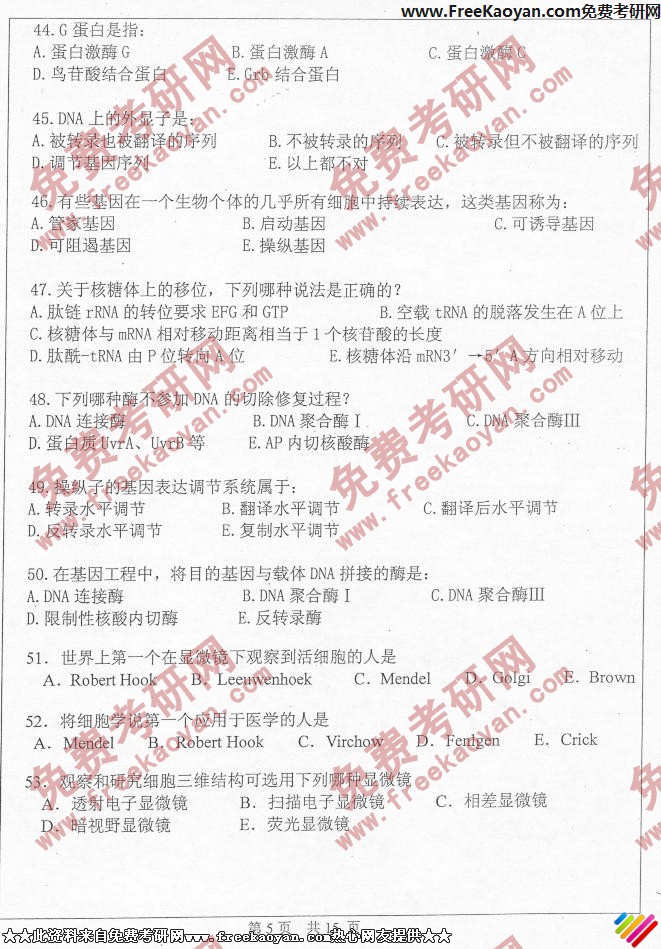 中山大学2006年半岛在线注册真题-生物综合(5)