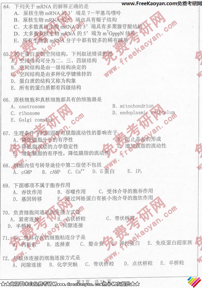 中山大学2006年半岛在线注册真题-生物综合(7)