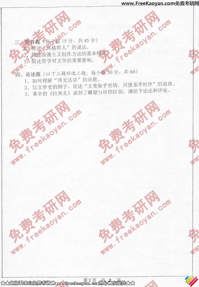 中山大学2006年半岛在线注册真题-文学理论(含中西文论)(2)
