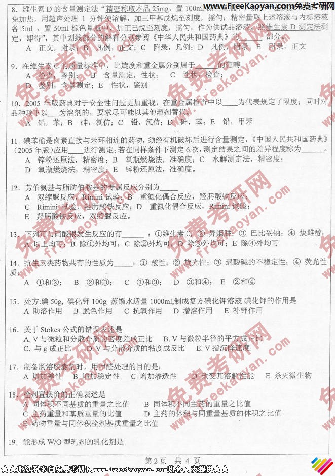 中山大学2006年半岛在线注册真题-药学综合(2)