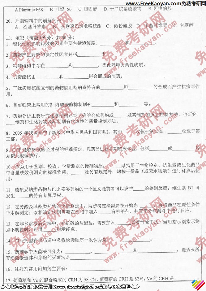 中山大学2006年半岛在线注册真题-药学综合(3)