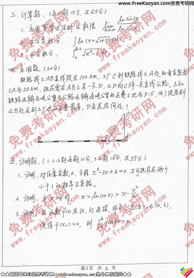 中山大学2006年半岛在线注册真题-一元微积分(2)