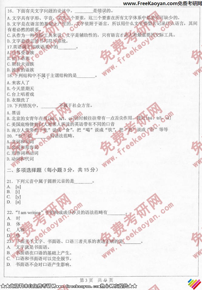 中山大学2006年半岛在线注册真题-语言学概论322(3)
