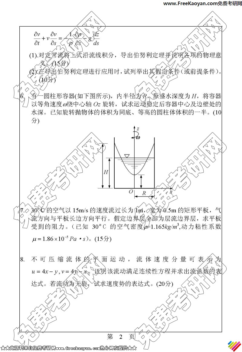 华南理工大学2006年半岛在线注册真题-不可压缩流体力学(2)