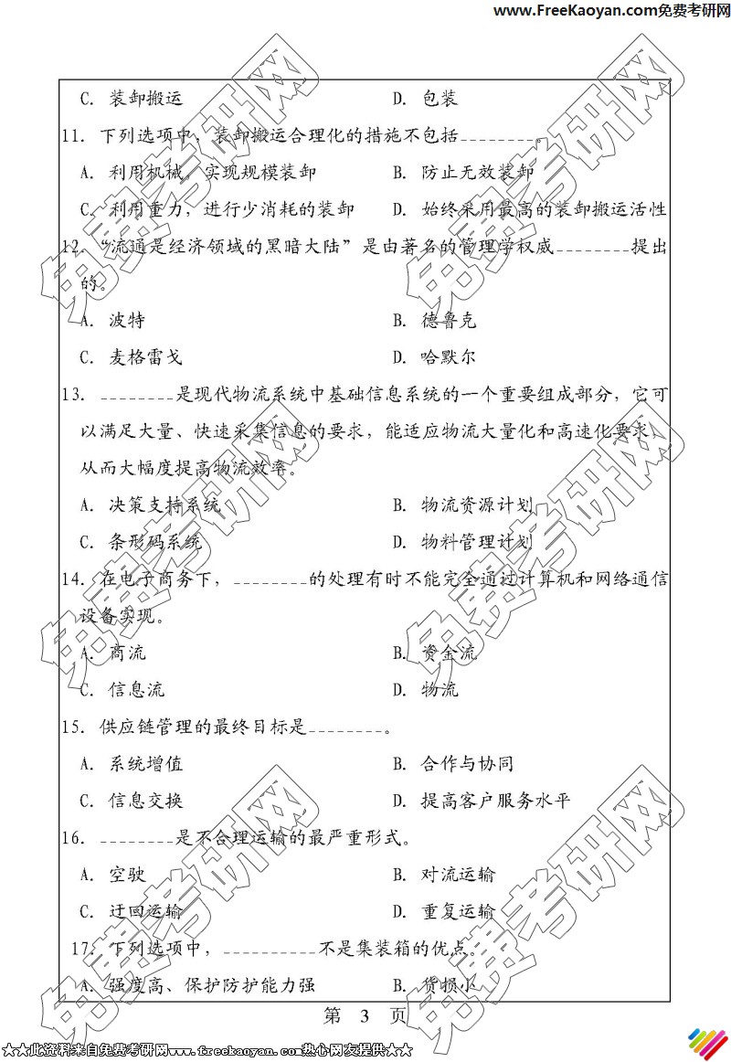 华南理工大学2006年半岛在线注册真题-现代物流管理(3)