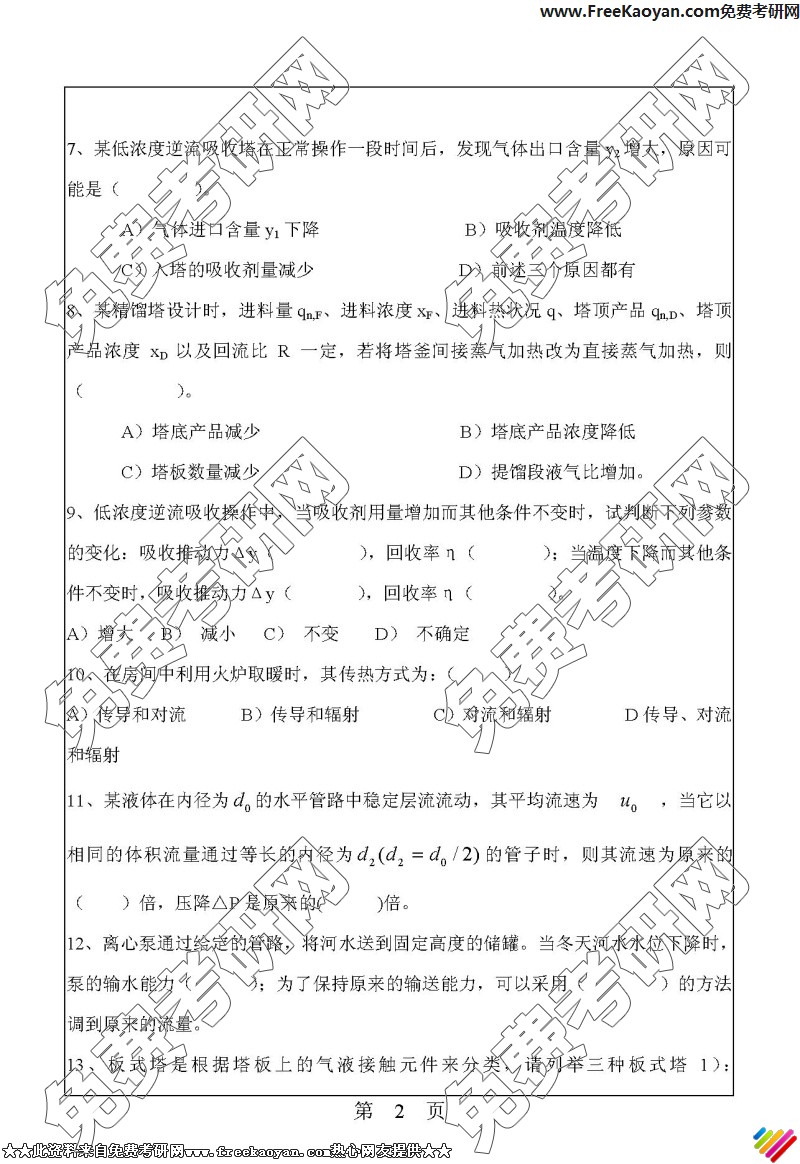 华南理工大学2006年半岛在线注册真题-化工原理(2)