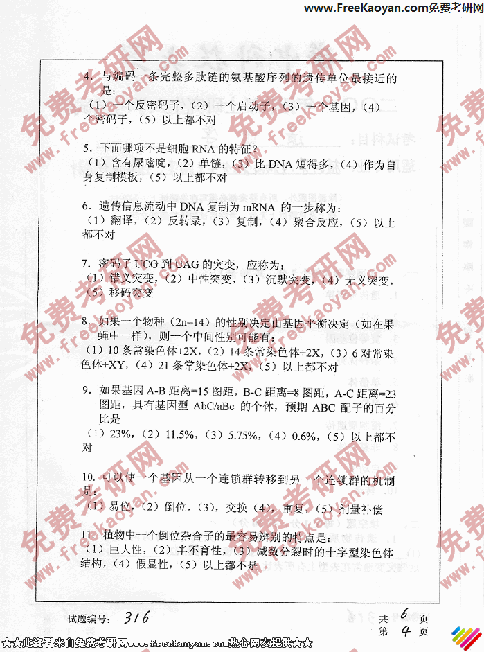 华中科技大学2006年半岛在线注册真题-遗传学(4)
