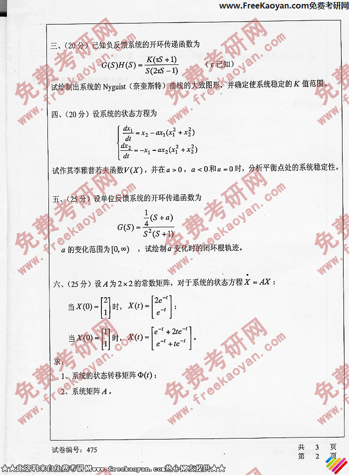 华中科技大学2006年半岛在线注册真题-自动控制理论475(2)