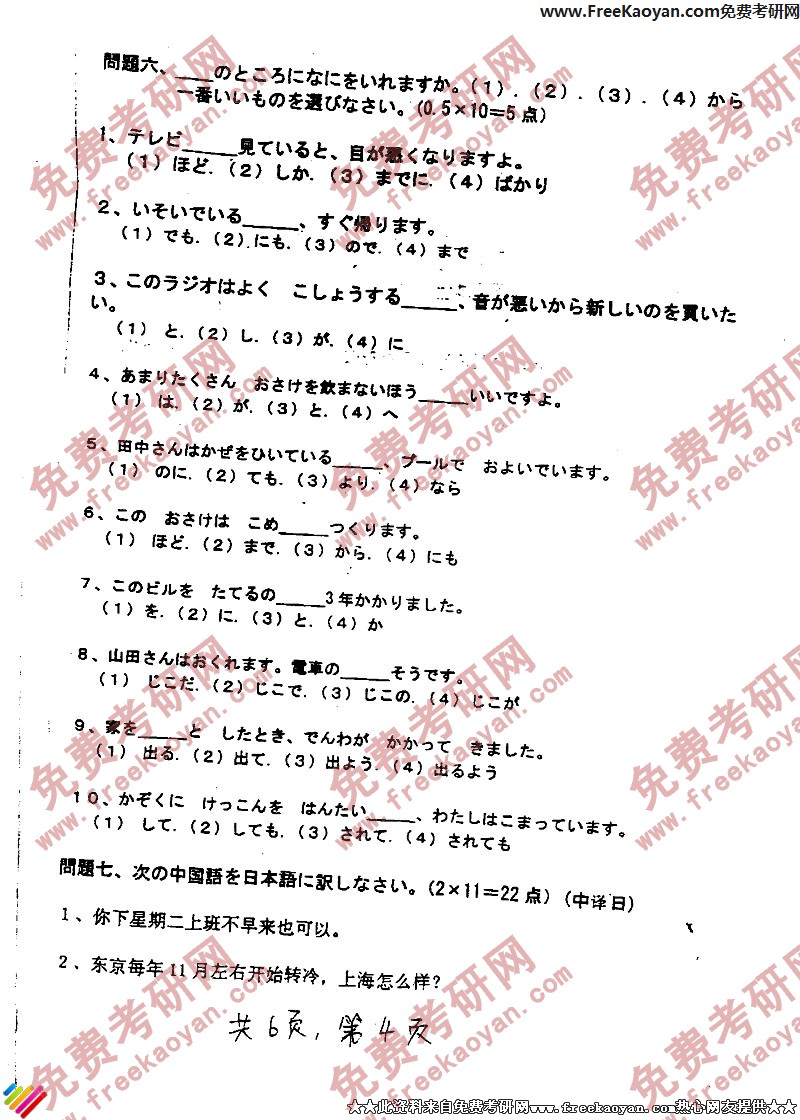 上海交通大学2005年半岛在线注册真题-日语二外(4)