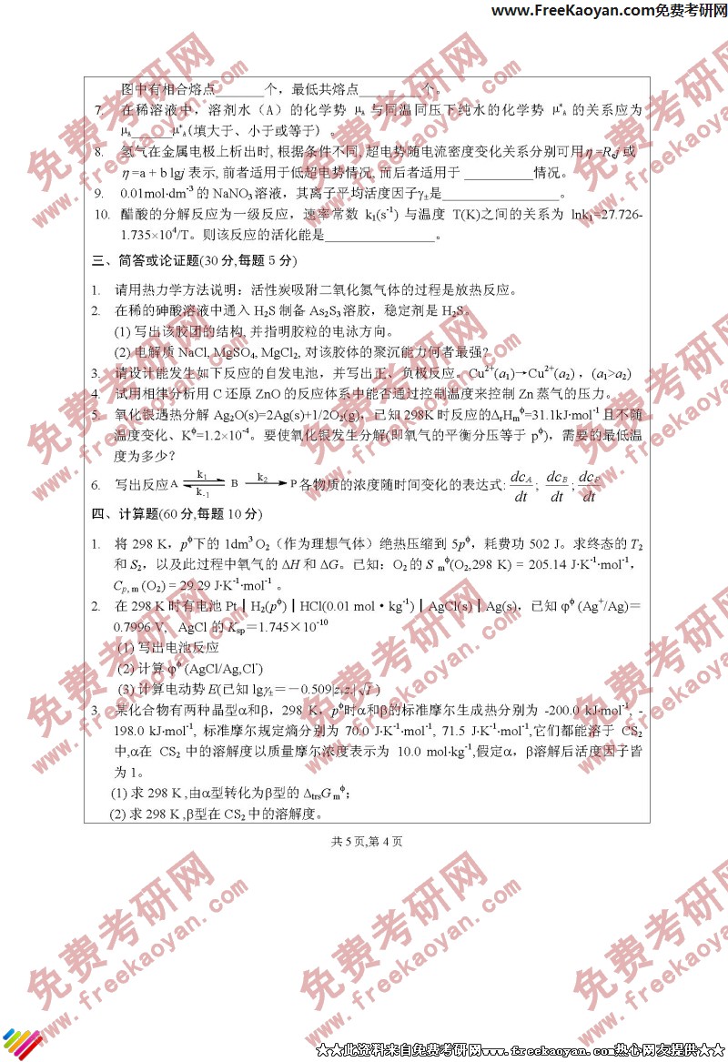 江苏大学2005年半岛在线注册真题-物理化学(4)