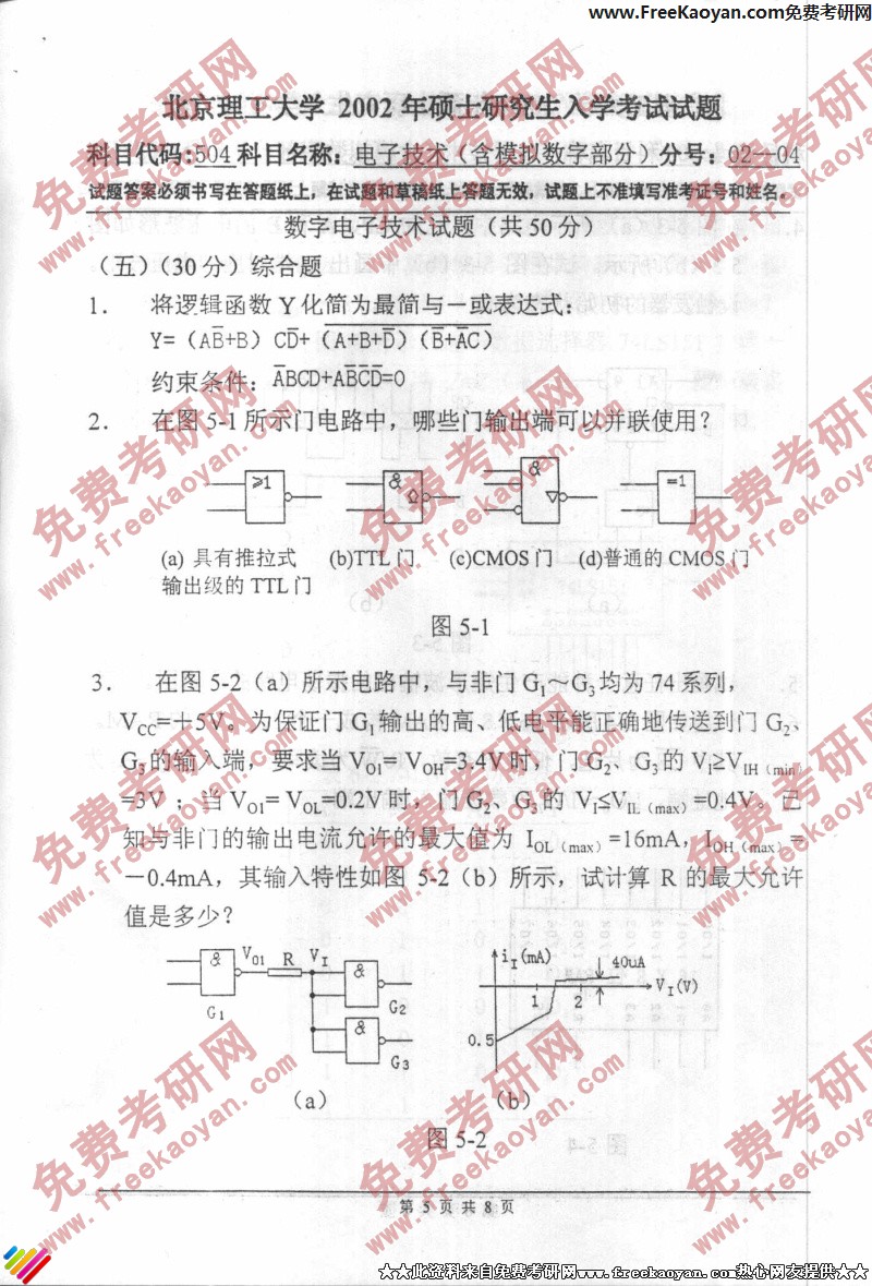 北京理工大学2002年半岛在线注册真题-电子技术(含模拟数字部分)(5)