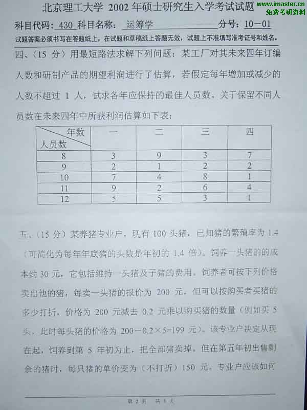 北京理工大学2002年半岛在线注册真题-运筹学(2)