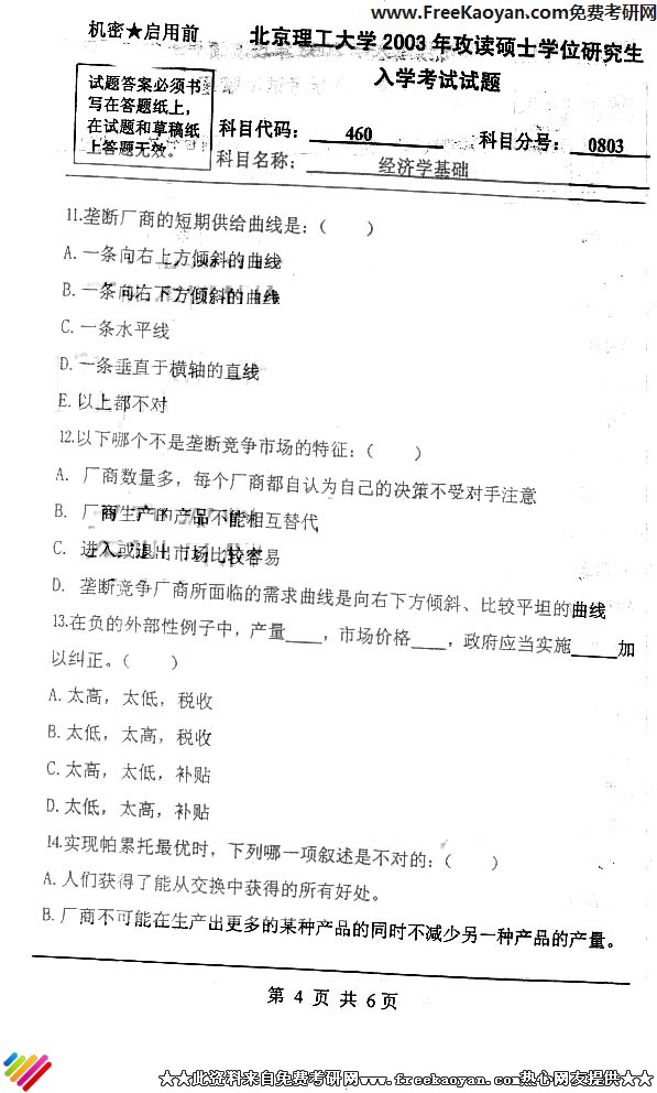 北京理工大学2003年半岛在线注册真题-经济学基础(4)