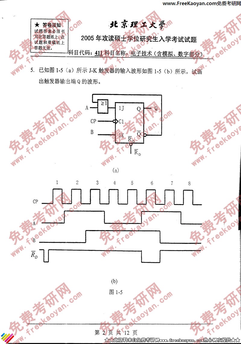北京理工大学2005年半岛在线注册真题-电子力学(含模拟、数字部分)(2)