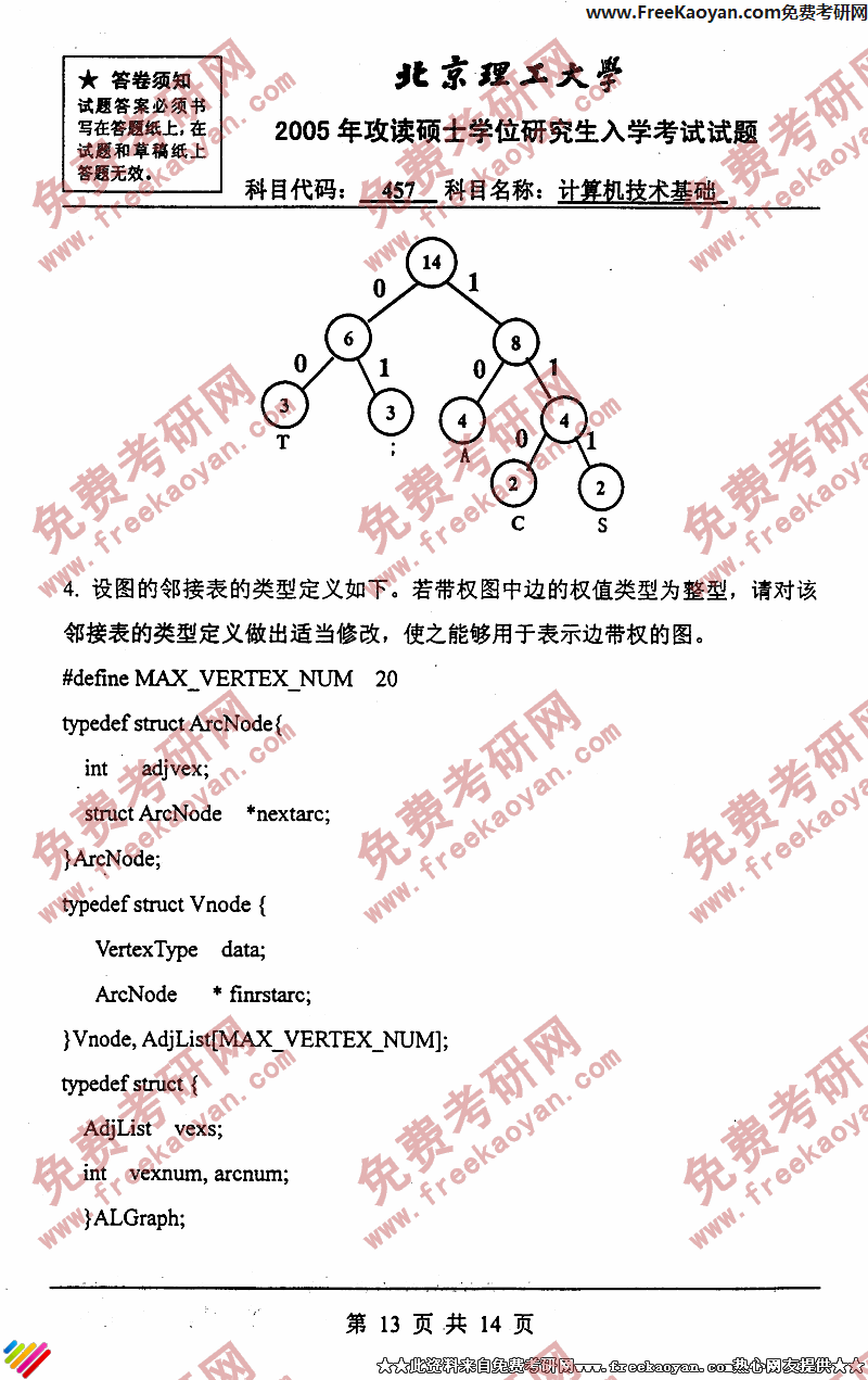 北京理工大学2005年半岛在线注册真题-计算机技术基础(含计算机组成原理、操作系统和数据结构)(13)