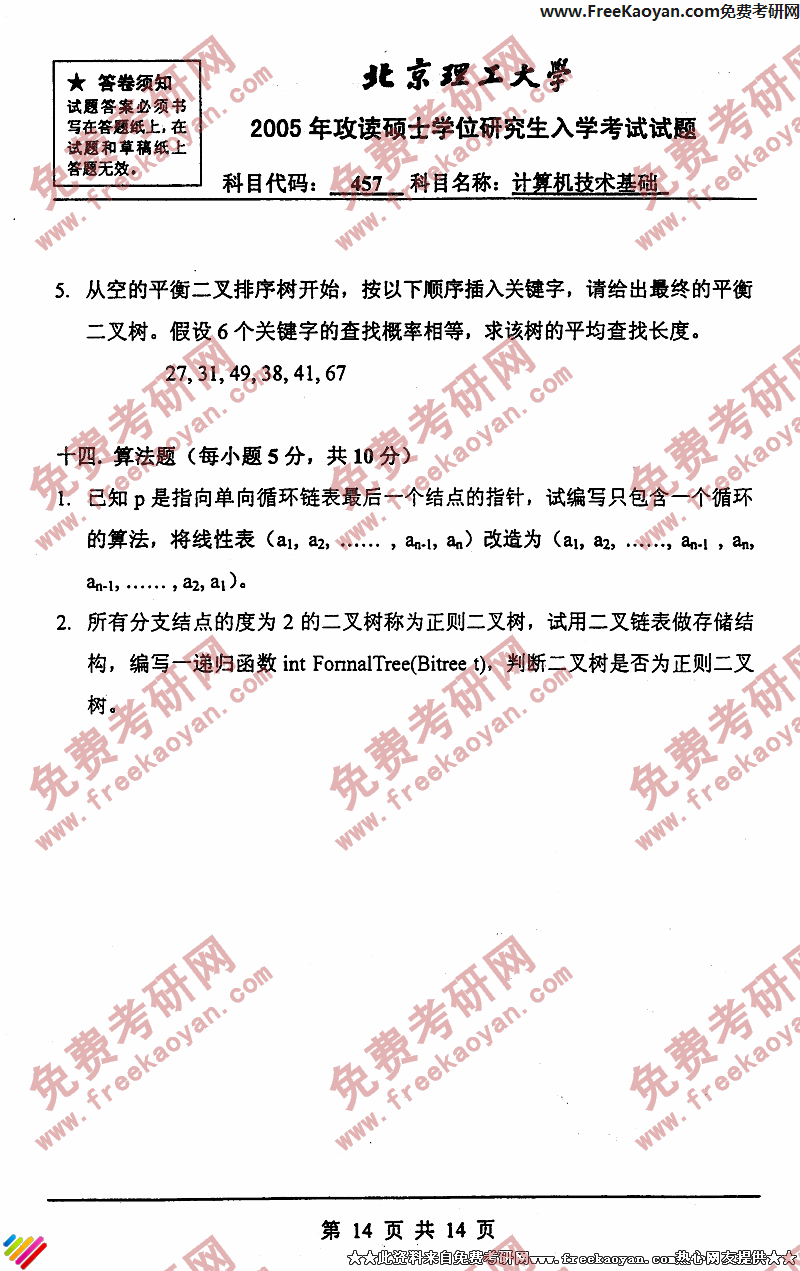 北京理工大学2005年半岛在线注册真题-计算机技术基础(含计算机组成原理、操作系统和数据结构)(14)