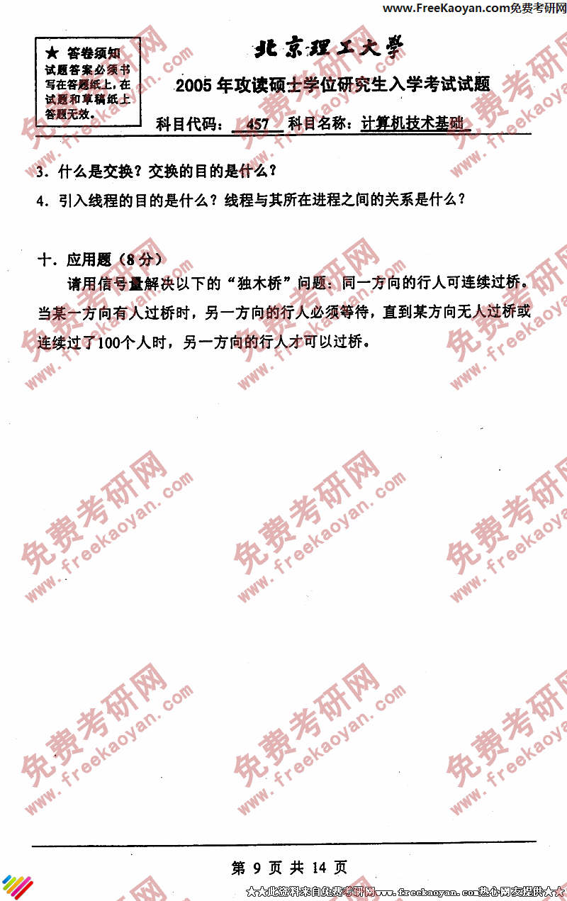 北京理工大学2005年半岛在线注册真题-计算机技术基础(含计算机组成原理、操作系统和数据结构)(9)