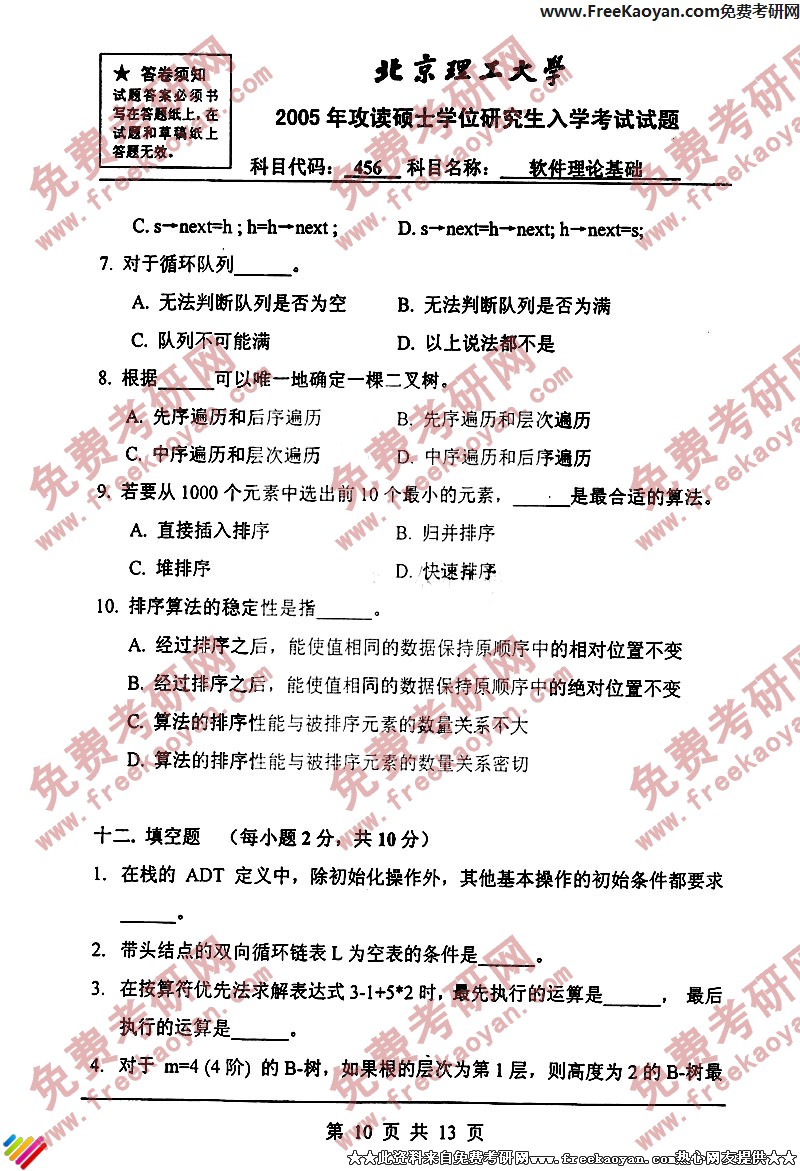 专业课半岛在线注册经验 本站小编 FreeKaoyan 2018-01-22北京理工大学2004年半岛在线注册真题-数据结构与程序设计
