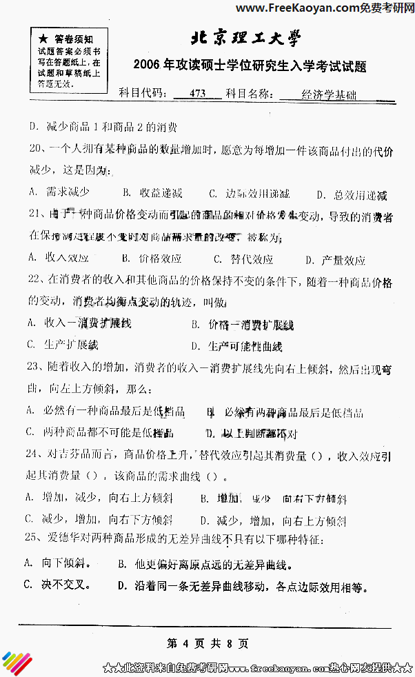 专业课半岛在线注册经验 本站小编 FreeKaoyan 2018-01-22北京理工大学2005年半岛在线注册真题-经济学基础