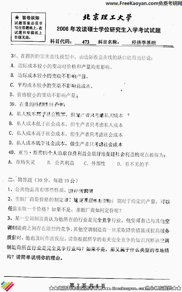 专业课半岛在线注册经验 本站小编 FreeKaoyan 2018-01-22北京理工大学2005年半岛在线注册真题-经济学基础