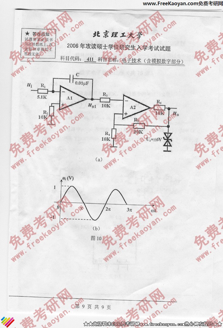 北京理工大学2006年半岛在线注册真题-电子技术(9)