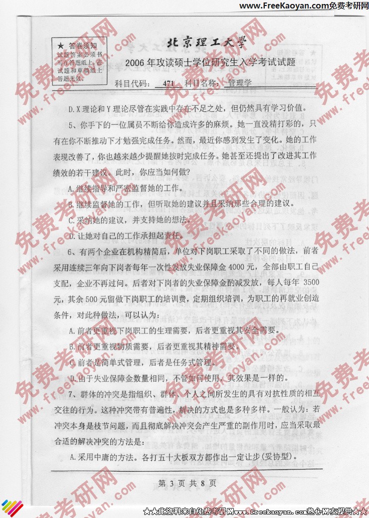 北京理工大学2006年半岛在线注册真题-管理学(3)