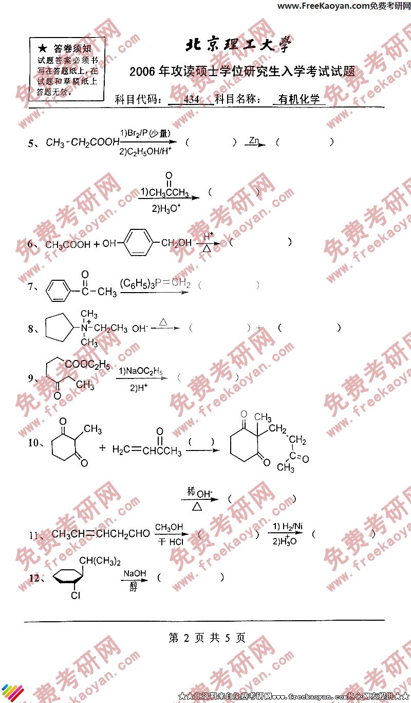 北京理工大学2006年半岛在线注册真题-有机化学(2)