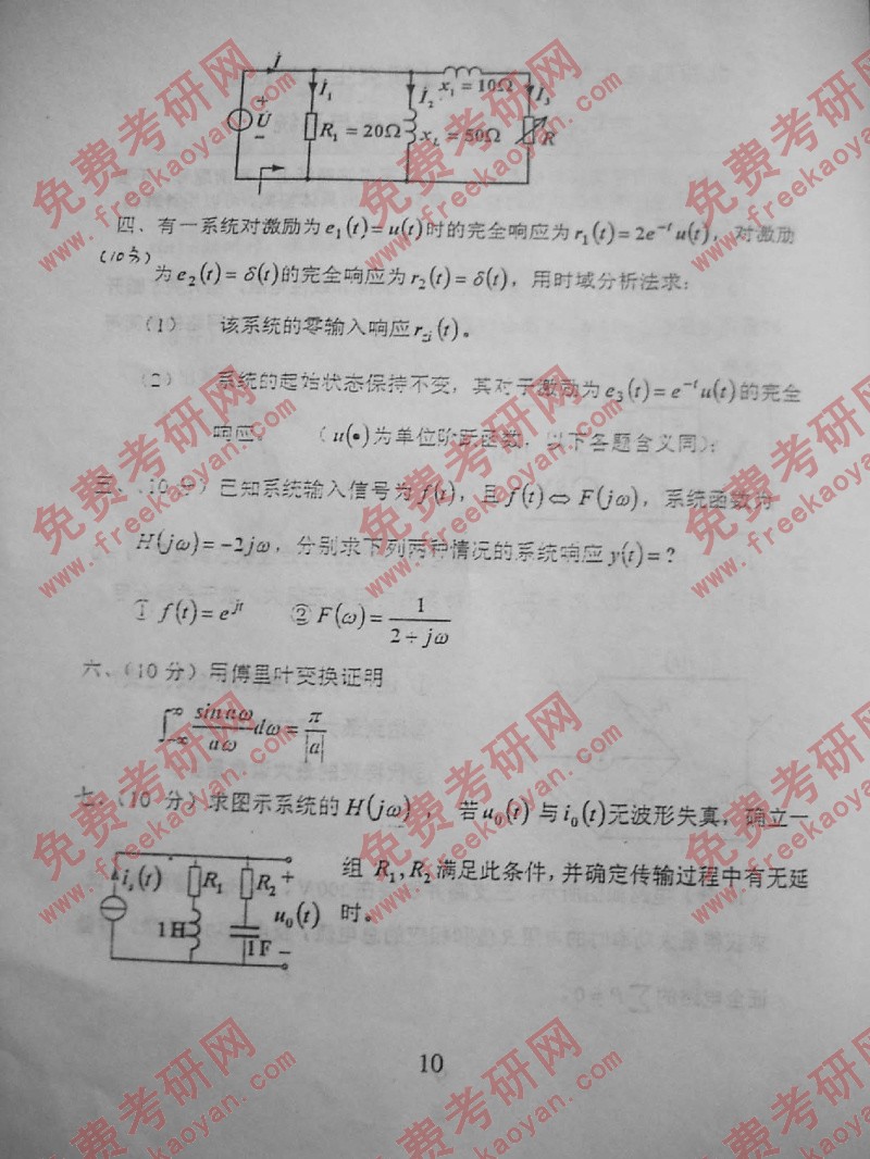 专业课半岛在线注册经验 本站小编 FreeKaoyan 2018-01-22北京邮电大学2000年半岛在线注册真题-电路,信号与系统