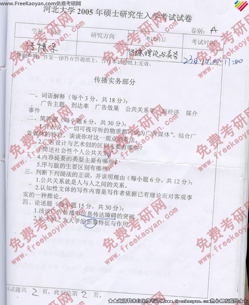 河北大学2005年半岛在线注册真题-传播理论与实务(2)
