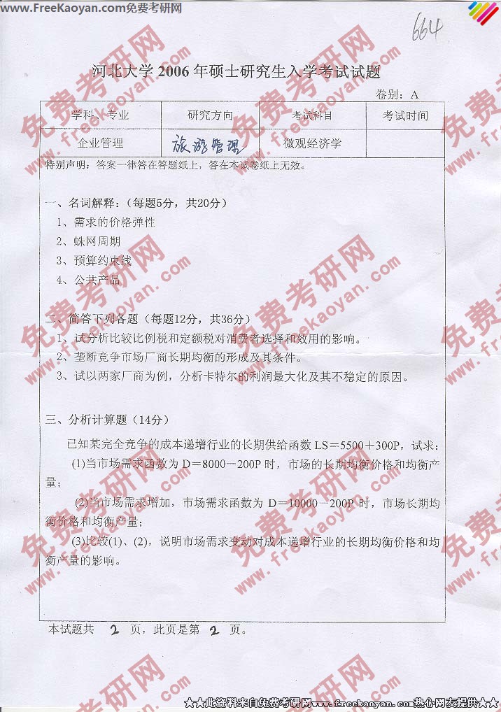 河北大学2006年半岛在线注册真题-企业管理(2)
