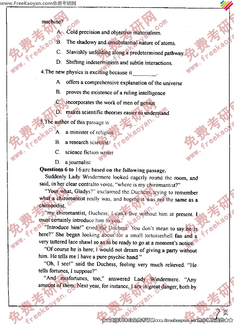 南开大学2004年半岛在线注册真题-基础英语(7)