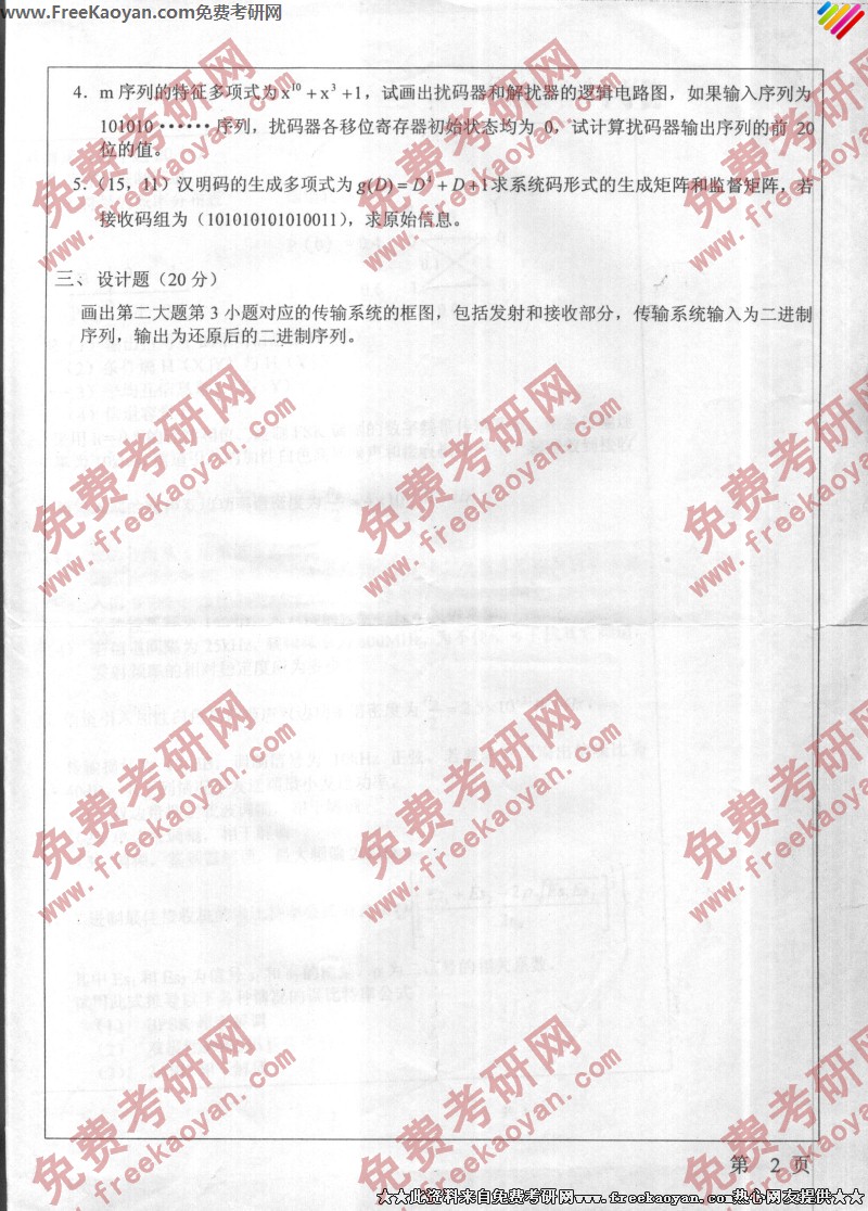 专业课半岛在线注册经验 本站小编 FreeKaoyan 2018-01-23南开大学2004年半岛在线注册真题-通信原理