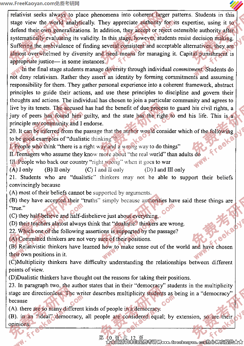 南开大学2006年半岛在线注册真题-基础英语(10)